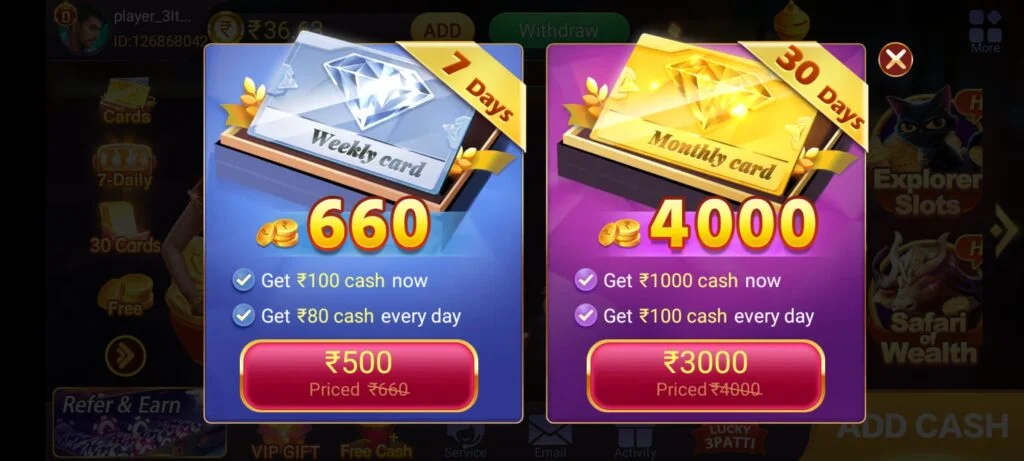 तीन पत्ती मास्टर सप्ताह कार्ड बोनस और मासिक कार्ड बोनस ?